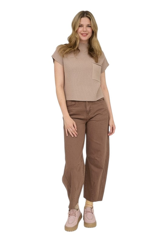 Stay cozy and stylish all season long with our All Is Calm Taupe Top. This knit sweater features a mock neck and pocket detail, making it the perfect combination of comfort and sophistication. Short sleeves add a modern touch to this must-have piece. Stay warm while looking effortlessly chic.