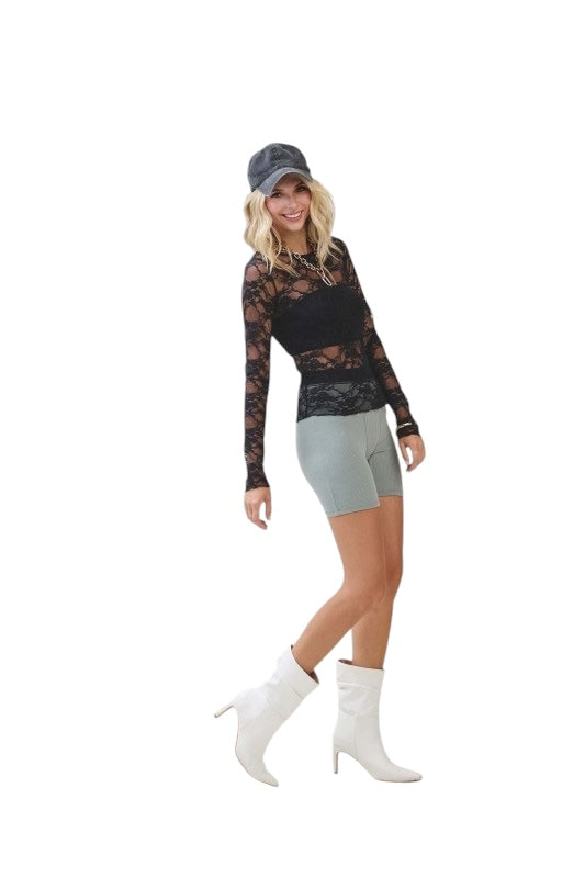 Fall in love with our Asked For It Black Lace Top! This stunning long sleeve top features a delicate mock neckline and intricate black lace that will make you stand out in any crowd. Feel confident and elegant in this must-have addition to your wardrobe.