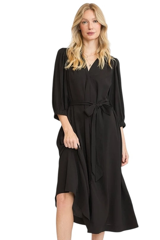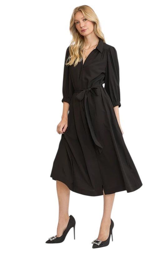 The It Just Clicked Black Midi Dress is designed for the modern professional woman. With a crisp collared neckline and a sleek belt sash, it offers a refined silhouette that exudes confidence. Practical pockets add functionality without compromising style, making it an ideal choice for a polished, girlboss-ready look that carries you effortlessly through your workday.