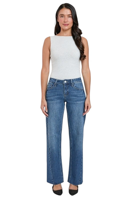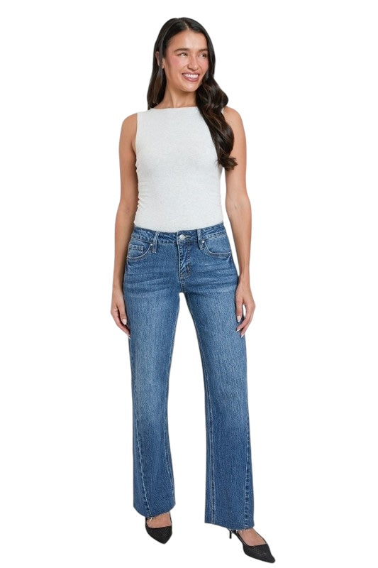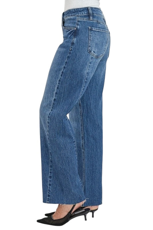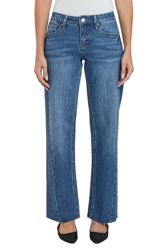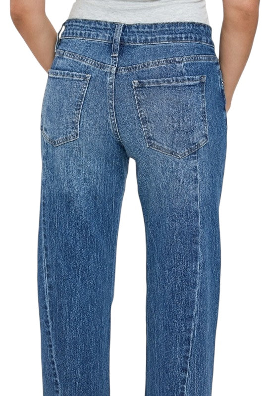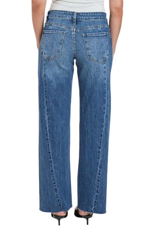 Blazing The Trail Wide Leg Denim offers a sophisticated take on classic high-rise jeans, featuring a distinctive angled seam that enhances its elegant wide-leg silhouette. Crafted for both comfort and style, these jeans provide a flattering fit that effortlessly transitions from day to night.