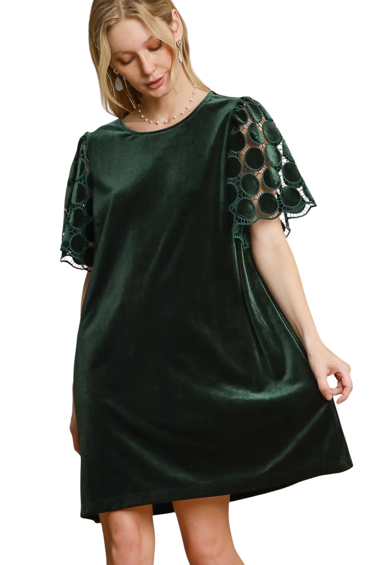 Raise a glass to the ultimate party dress: Cheers To A Good Time Dress. With its luxurious emerald green velvet fabric and stylish cut out sleeve detail, this dress is sure to turn heads. The comfortable short fit allows you to dance the night away with confidence. Pair with statement earrings and hit the town in style.