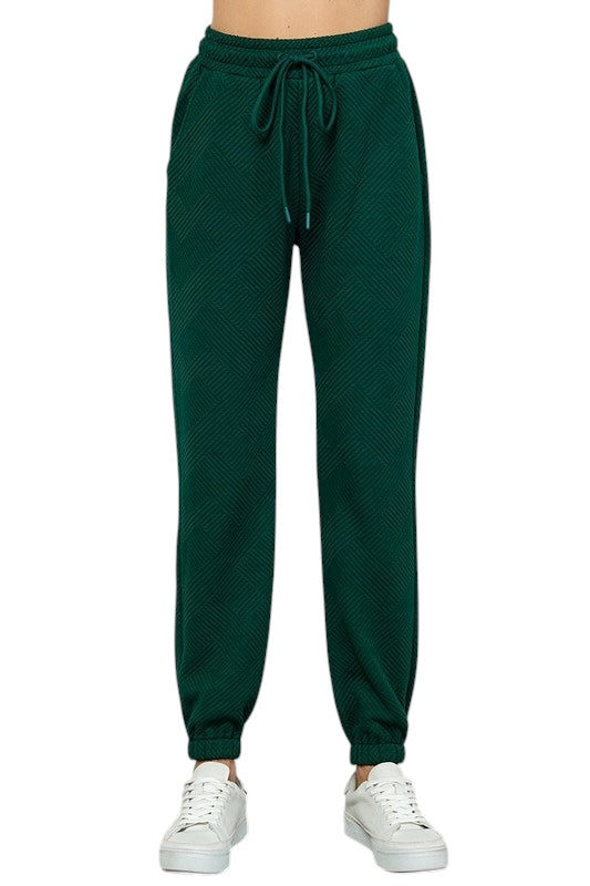 Stay stylish and cozy in our Forest green joggers! The textured soft pockets and elastic waist provide both comfort and practicality. Perfect for everyday wear, these joggers will keep you looking and feeling great. Don't miss out on this must-have piece for your wardrobe!