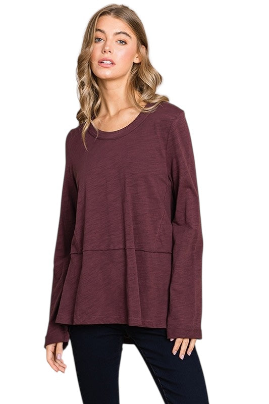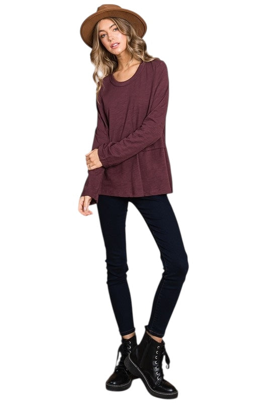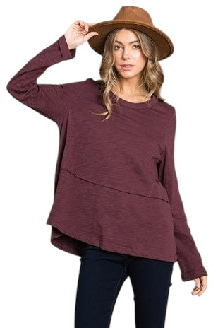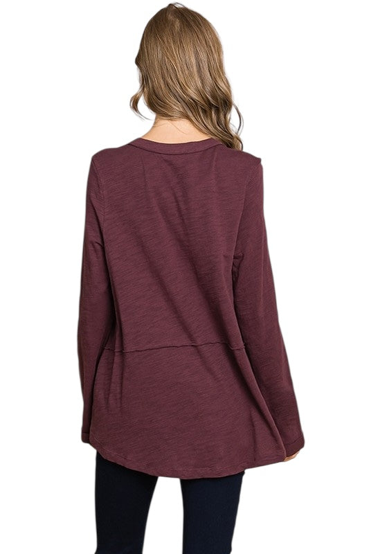 Sip back and relax in the Gave Them More Merlot Top! Made of cozy washed cotton, this long sleeve top features a rounded neckline and a casual, comfortable fit, perfect for enjoying a glass of wine. Cheers to style and comfort!