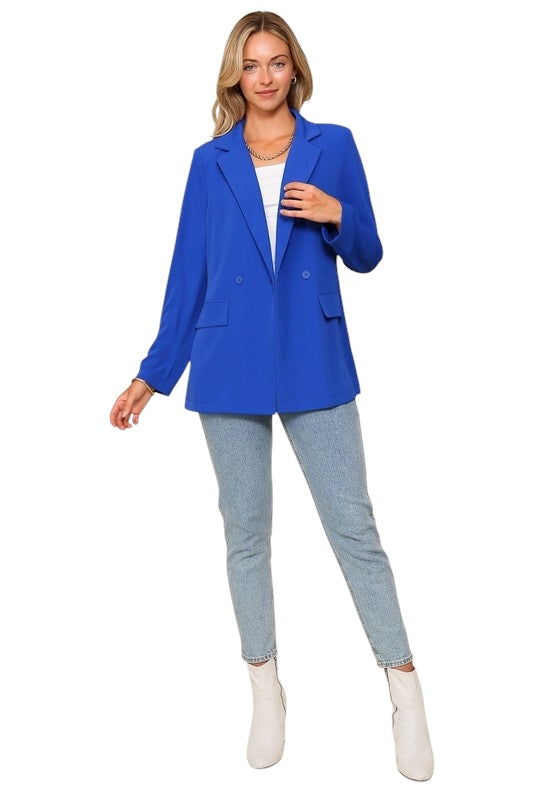 "Step into the night with confidence and style in our Let Go Tonight Royal Blazer. With its open front design, this long sleeve blazer is perfect for easy layering while keeping you looking chic. Featuring front pockets and a lightweight material, this blazer is both practical and fashionable. Embrace the night and let your inner royalty shine!"