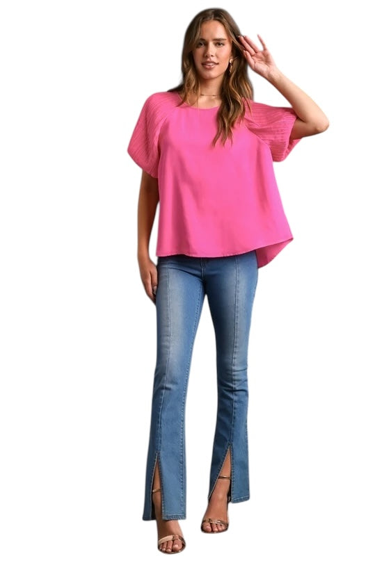 This Like It's Nothing Pink Top features a flattering round neck and elegant pleated balloon sleeves that add a touch of sophistication to your look. The delicate keyhole detail enhances its feminine charm, making it perfect for both casual outings and special occasions. Comfortable and stylish, this top supports your confidence with every wear.