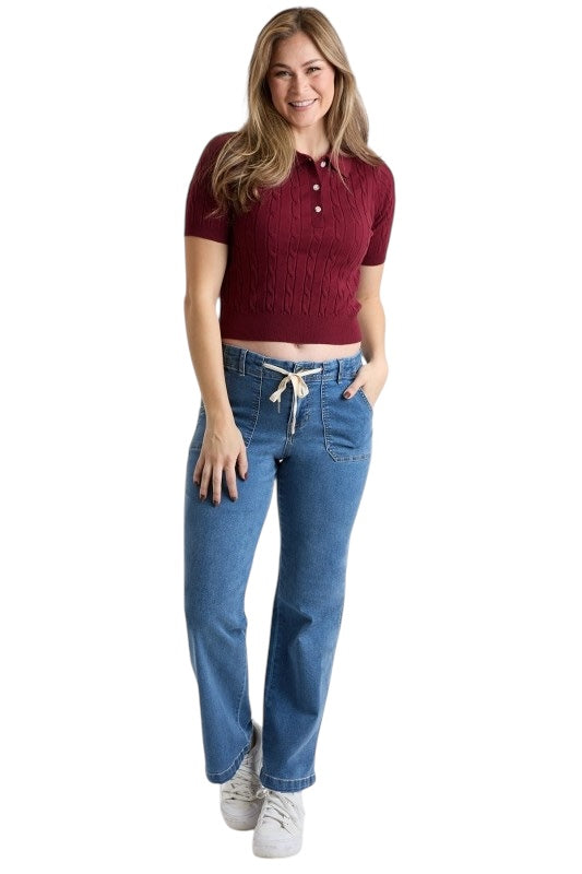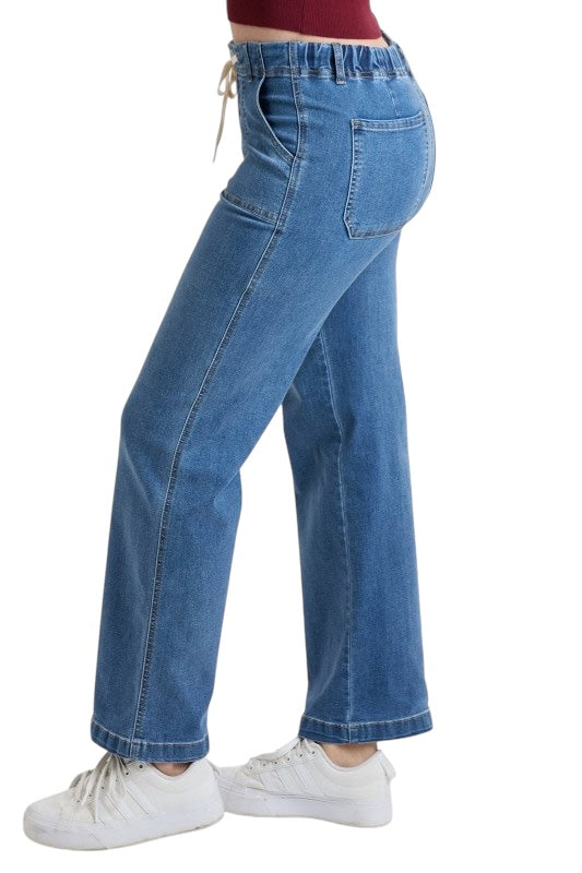 Elevate your wardrobe with the My Kind Of Day Denim jeans, featuring a mid-rise fit and elegant tie-front detail. These wide-leg jeans combine timeless denim with a modern silhouette, offering comfort and effortless style for any occasion. Perfectly tailored to create a graceful flow, they bring a refined edge to casual looks.