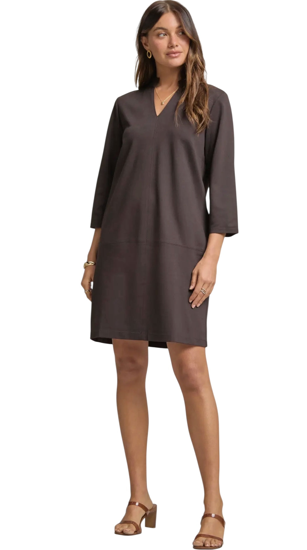 Embrace the fall transition with the Nothing To Prove Chocolate Dress, crafted from a thicker knit fabric for cozy warmth. Its elegant 3/4 sleeves and flattering V-neckline create a refined silhouette, while practical pockets add subtle convenience. Perfect for sophisticated layering, this dress combines comfort and style effortlessly.