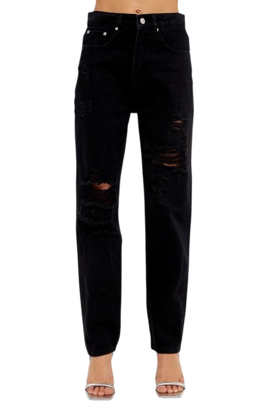 "Effortlessly elevate your style with our See You Soon Black Jean. This full length denim features a sleek black wash and front distressed details for a chic and edgy look. Dress up or down for any occasion and make a statement wherever you go. Get ready to turn heads and leave a lasting impression!"