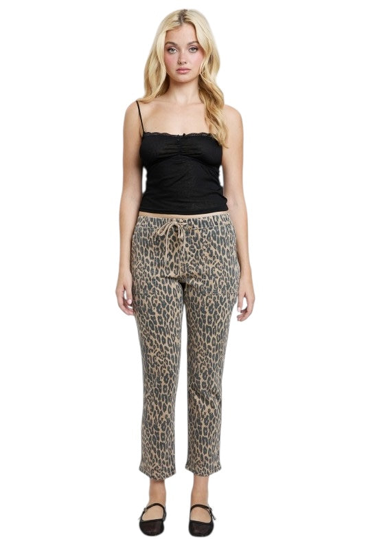 The Walk The Wild Side Pant offers a sophisticated blend of comfort and style with its high-rise, pull-on design. Featuring a tie-front detail and a straight-leg cut, these joggers provide a sleek silhouette that's perfect for both relaxed and polished looks. Ideal for effortless elegance in your everyday wardrobe.