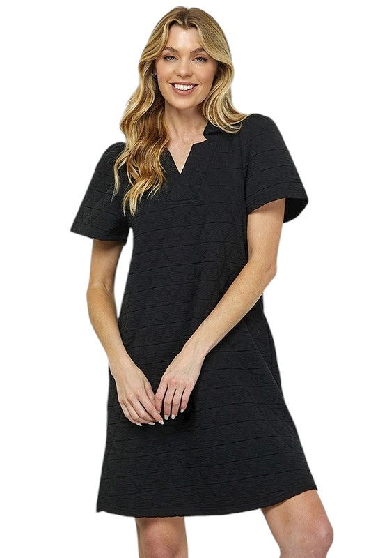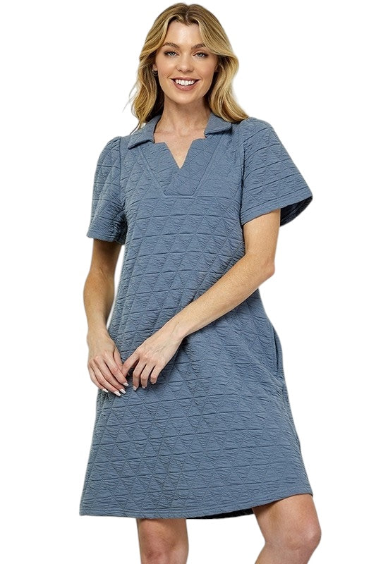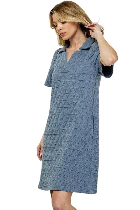 "Experience ultimate comfort and style with our Walking All Over Dress! Featuring a quilted collar and convenient side pockets, this dress is both functional and fashionable. Its soft, lightweight material will have you walking all day long with ease. Elevate your wardrobe with this must-have dress!"